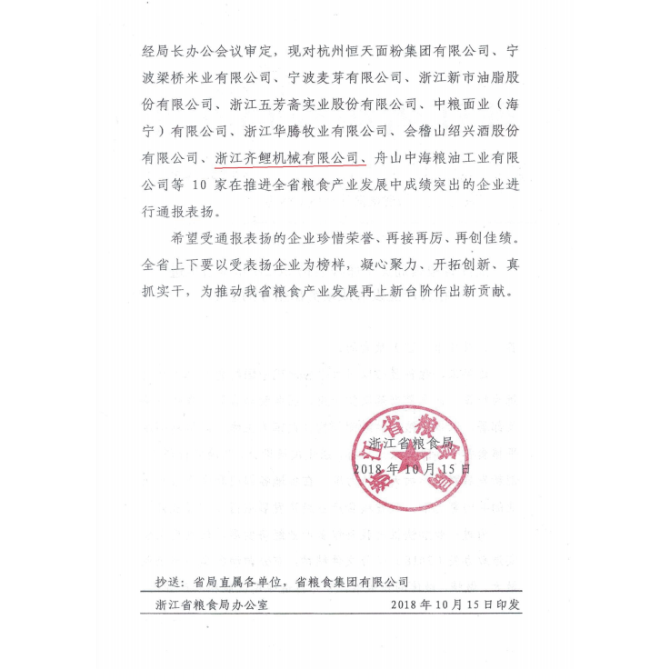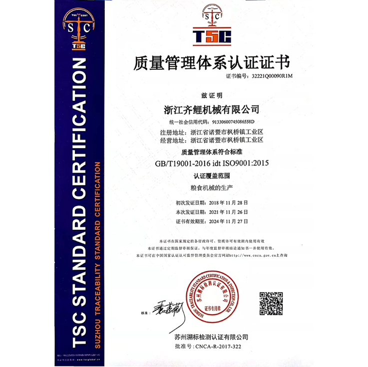浙江齊鯉機械有限公司是一家專業生產糧食加工設備的中外合作科技型企業。公司座落于鐘靈毓秀的西施故里-諸暨市毗鄰杭州蕭山國際機場浙贛鐵路貫穿全境,杭金衢、諸永高速公路設有互通口,地理位置優越,交通發達便捷。 公司前身為諸暨市糧油機械廠,創辦于1995年,于2001年組建諸暨市齊鯉糧機有限公司,2002年與香港合瑞有限公司合作成立現公司。2003年投資420萬美元,新建占地55000平方米,建筑面積25000平方米的新廠區。2006年又新征土地80000平方米,投資1380萬美元,組建浙江齊鯉光電科技有限公司,實施二期開發項目。